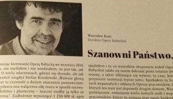 Marszałek województwa pomorskiego Mieczysław Struk i dyrektor Opery Bałtyckiej profesor Warcisław Kunc dokonali wnikliwej oceny sytuacji tej instytucji i pragną poinformować o wspólnej decyzji dotyczącej przyszłości Opery Bałtyckiej w Gdańsku. Opera Bałtycka w sezonach 2016/2017 i 2017/2018 odniosła wiele sukcesów, na co wskazuje liczba, różnorodność i wysoki poziom nowych produkcji, a także znaczący wzrost frekwencji i wpływów własnych instytucji. Zostały one osiągnięte pomimo niewygasającego konfliktu części załogi (głównie skupionych w związkach zawodowych) z dyrekcją, a także – dekapitalizacji budynku utrudniającej podejmowanie śmielszych planów artystycznych. Wymaga on szybkiej interwencji w postaci remontu lub przebudowy, zaś instytucja – dalszych zmian strukturalnych i kadrowych. Marszałek Mieczysław Struk i prof. Warcisław Kunc zgodnie uznali, że w obliczu tych i innych wyzwań, które nie są związane z działalnością artystyczną instytucji, misja prowadzenia Opery Bałtyckiej powierzona dyrektorowi Kuncowi zakończy się z końcem czerwca 2018 roku. Zarząd Województwa Pomorskiego podejmie niebawem decyzję co do sposobu wyłonienia nowego dyrektora Opery Bałtyckiej.