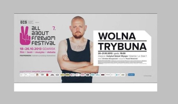Po raz drugi – po ubiegłorocznym „Re-Wolt” wg tekstu Anny Wojnarowskiej i w reżyserii Weroniki Szczawińskiej – w programie AAFF znalazła się prapremiera teatralna. Tym razem Paweł Wodziński, utytułowany reżyser teatralny, w obrazie „Wolna Trybuna” zmierzy się z tekstem Christiana Skrzyposzka pod tym samym tytułem. Powieść, która ponad piętnaście lat czekała na publikację w Polsce, osiągnęła miano kultowej. W karykaturalny sposób maluje obraz polskiego społeczeństwa w dobie 50-lecia PRL. Ukazała się dopiero w roku 1999, tuż po śmierci autora. Przedstawienie pomyślane zostało jako projekt społeczny, w którym będą uczestniczyć nie tylko statyści, i nieprofesjonalni aktorzy, wyłonieni w drodze castingów, ale także sami widzowie. Spektakl prezentowany będzie w ramach AAFF dwukrotnie w Instytucie Sztuki Wyspa, od listopada gościć będzie zaś w Warszawie na deskach Instytutu Teatralnego im. Zbigniewa Raszewskiego.