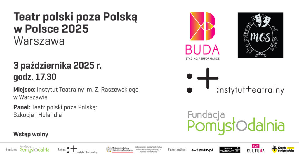 godz. 17.30 – panel dyskusyjny wokół tematu polskiego teatru poza Polską: Szkocja i Holandia, w Instytucie Teatralnym, ul. Jazdów 1